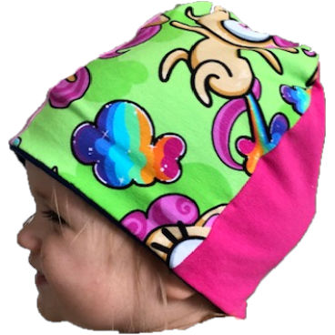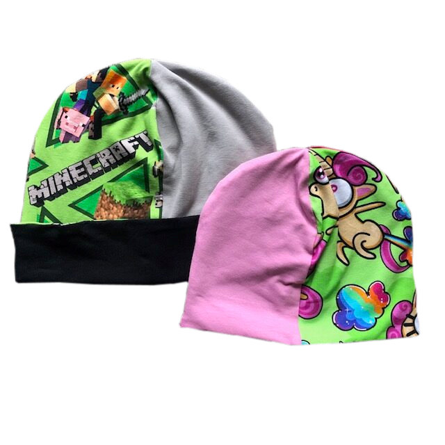 Perfect pattern to get rid of some scraps! Up to 8 different fabrics can be used in this pattern, which is built on 1 panel that you put together in different combinations. Sizes 1-12 years are included and two different lengths of the hat (short and beanie/folded brim). The hat is sewn in double jersey and is reversible. For single jersey you can adjust the seam allowance at the bottom.