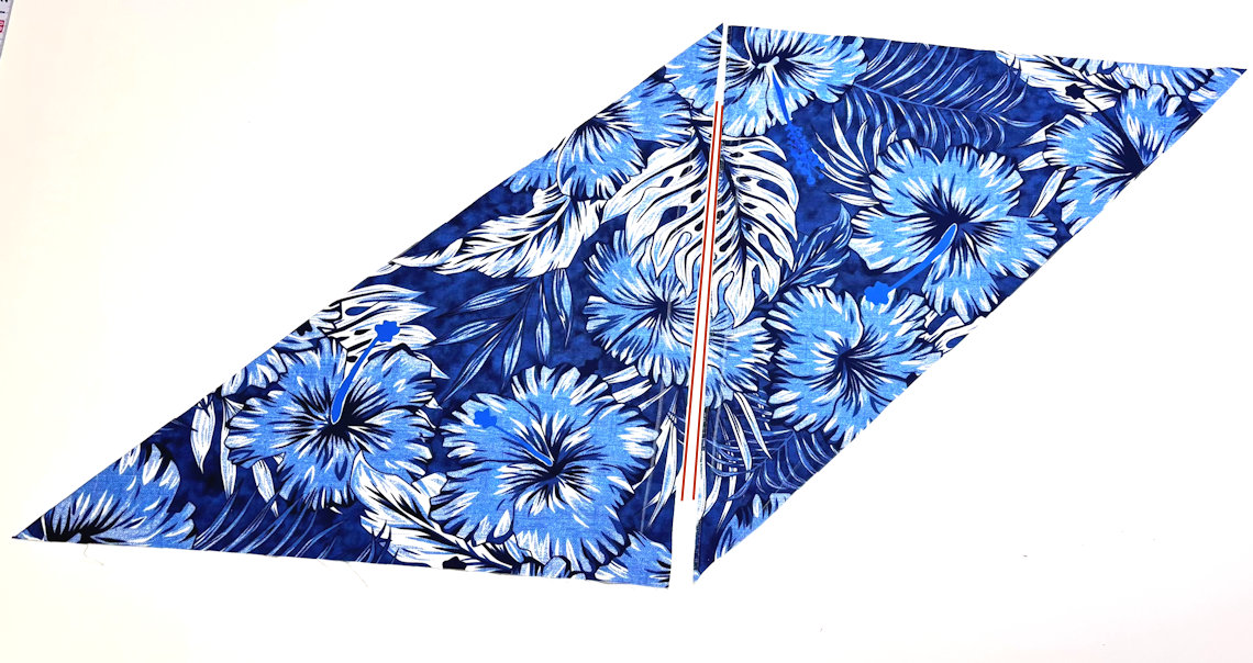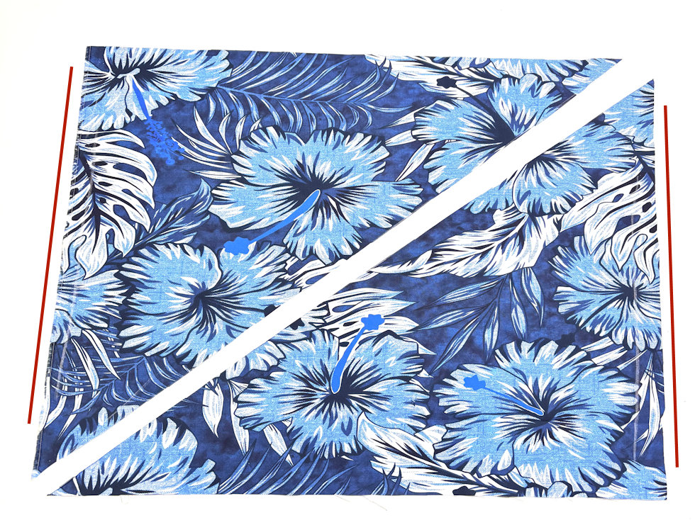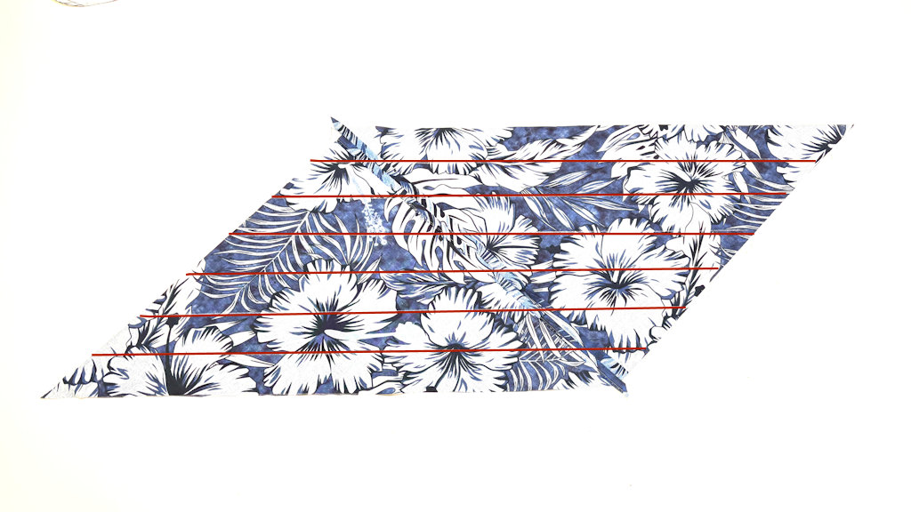 Rita sedan ut remsor med bredden på ditt skråband. Jag har valt 4 cm bredd på mina remsor, helt enkelt för att min linjal är 4 cm bred.