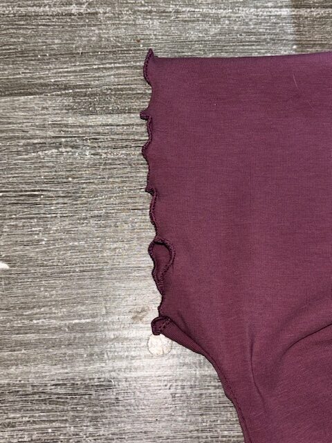 Resultatet blir nu en liten, tät sicksack över kanten på dit tyg, och i och med att du sträckt tyget så får det den krusade, bubbliga, effekten.