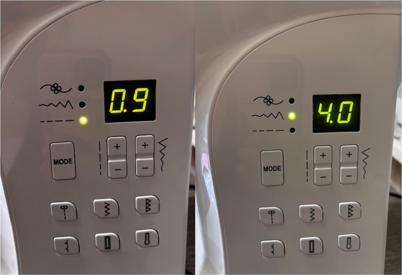 De inställningar jag använder är Stygnlängd 0,9 och Stygnbredd 4.